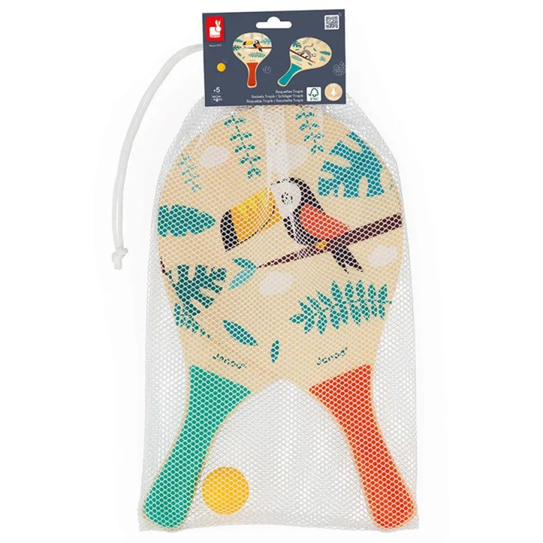 Disfruta con tus originales palas de madera, y llévalas contigo a todos tus viajes y excursiones. Tiene un diseño colorido y tropical que les fascinará. ¡Un excelente recurso para ejercitar nuestro cuerpo y poner a prueba nuestras habilidades motrices!