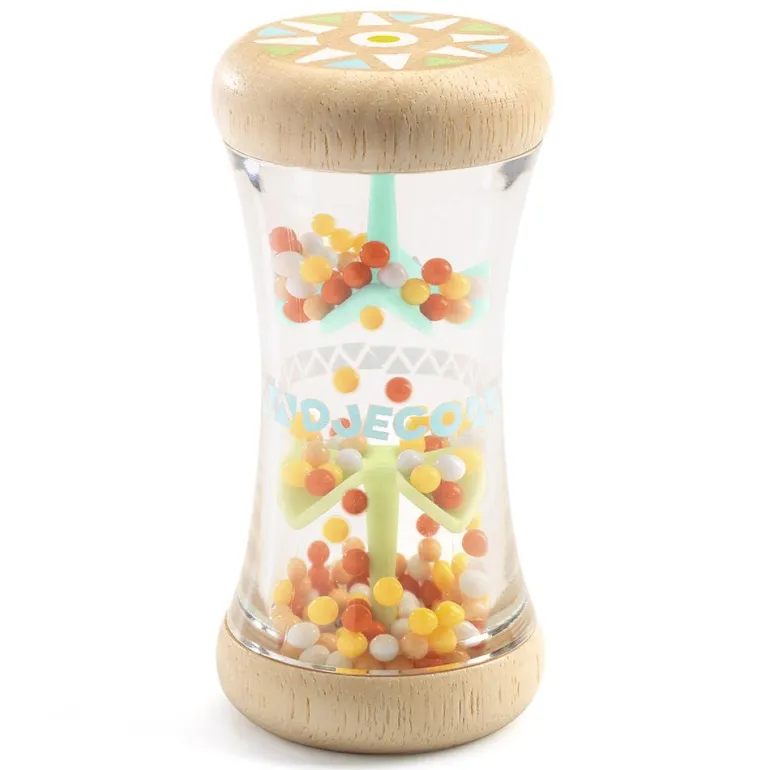 ¡Siente el ritmo! Descubre Baby Plui, un vistoso sonajero alargado de madera con diseño colorido, que tu bebé adorará.