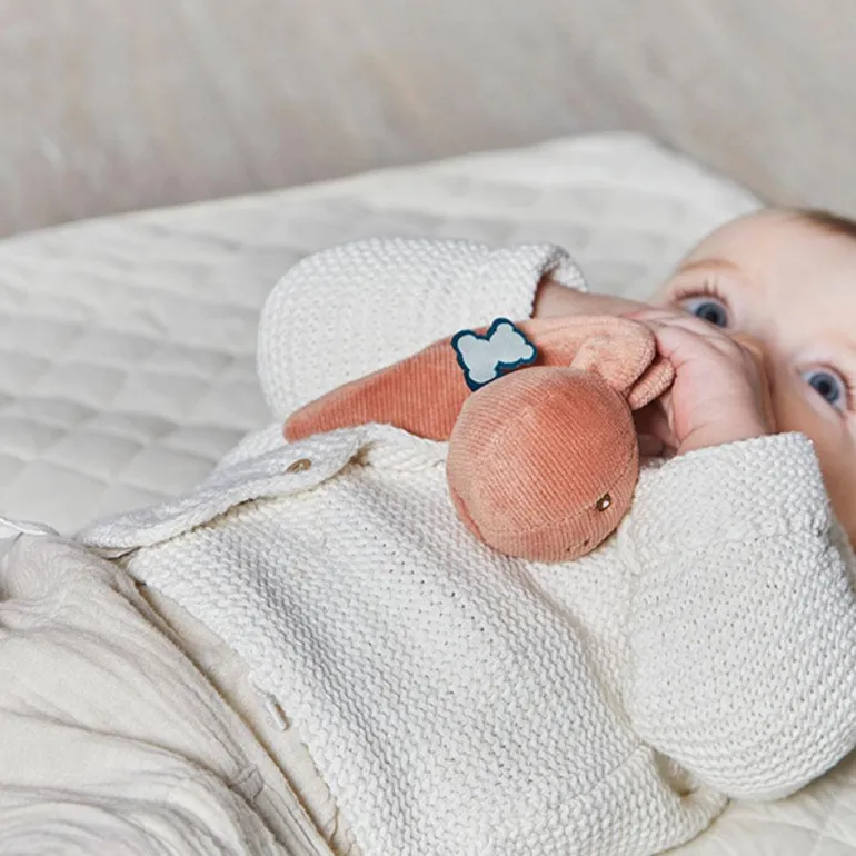 Este sonajero es perfecto para acompañar a tu bebé en sus ratos de juego gracias a su sonido y los elementos que puede explorar con sus manos y boca, o para disfrutar de una siesta reparadora mientras se relaja con el suave tacto y calidez de su tejido.