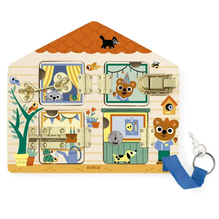 Esta casita está repleta de simpáticos amigos que están muy atareados, ¡desbloquea cada cerradura y descubre qué está haciendo cada uno!