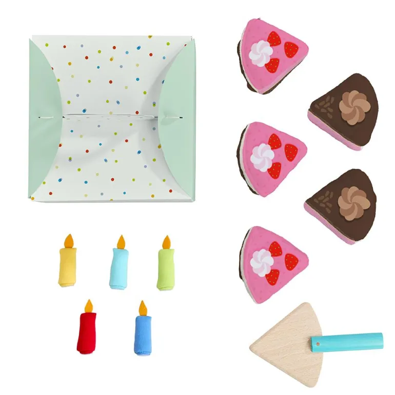 Tus fiestas de cumpleaños serán todo un éxito con este genial pastel. Presentado en una bonita caja decorativa, incluye cinco velas y las porciones van unidas con velcro, por lo que solo tendrás que usar la pala de madera para servir a tus invitados una suculenta porción, ¡escoge el sabor y preparaos para cantar bien alto!