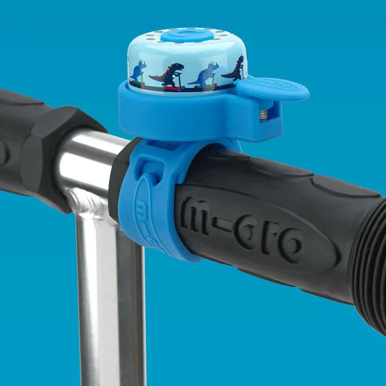 Coloca en el manillar de tu patinete Micro un timbre con un llamativo diseño de dinosaurios y disfruta de una conducción segura y divertida.