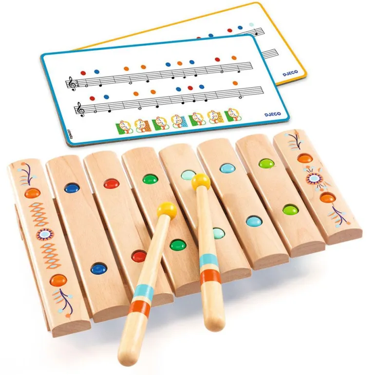 Descubre todos los secretos de este instrumento de madera y deja a todos boquiabiertos. El juego contiene varias partituras en clave de color, para que fácilmente puedas reproducir con las baquetas cada canción, ¿no es el sonido más relajante y bello que has escuchado?