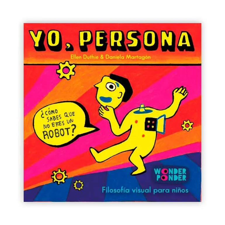 ¿Sabes con total certeza que eres una persona? ¿Cómo sabes que en realidad no eres un robot? Si tuvieras dos o tres cerebros, ¿serías dos o tres personas? ¿Y tú, qué piensas? Yo, persona es un libro-juego presentado dentro de una caja que indaga sobre quién somos y qué somos con humor, curiosidad y rigor. El sello Wonder Ponder acerca a sus lectores a algunas de las grandes preguntas de la filosofía de forma divertida y atractiva. Escenas curiosas y preguntas intrigantes invitan a la reflexión y al diálogo, estimulando el desarrollo de un pensamiento propio y facilitando la construcción de un mapa visual y conceptual del tema abordado en cada título. Para leerse a solas o en compañía, las cajas Wonder ponder están diseñadas para mirarlas, leerlas y pensar sobre ellas en contextos familiares, lúdicos o educativos.