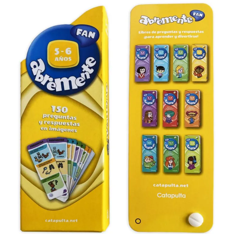 La clásica colección Abremente de preguntas y respuestas llega renovada, con nuevo nombre, divertidos personajes y contenido actualizado para aprender jugando allá donde estés. Su formato en abanico es ideal para que lo lleves allá donde vayas, ¡juega en solitario o desafía a quien tengas al lado!
