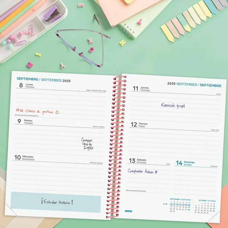 ¡Comienza el curso de la forma más divertida e inspiradora! Sorprende a todos con esta fantástica agenda tamaño cuarto, en formato semana vista y con un inspirador diseño repleto de flores. ¡Organízate como nunca!