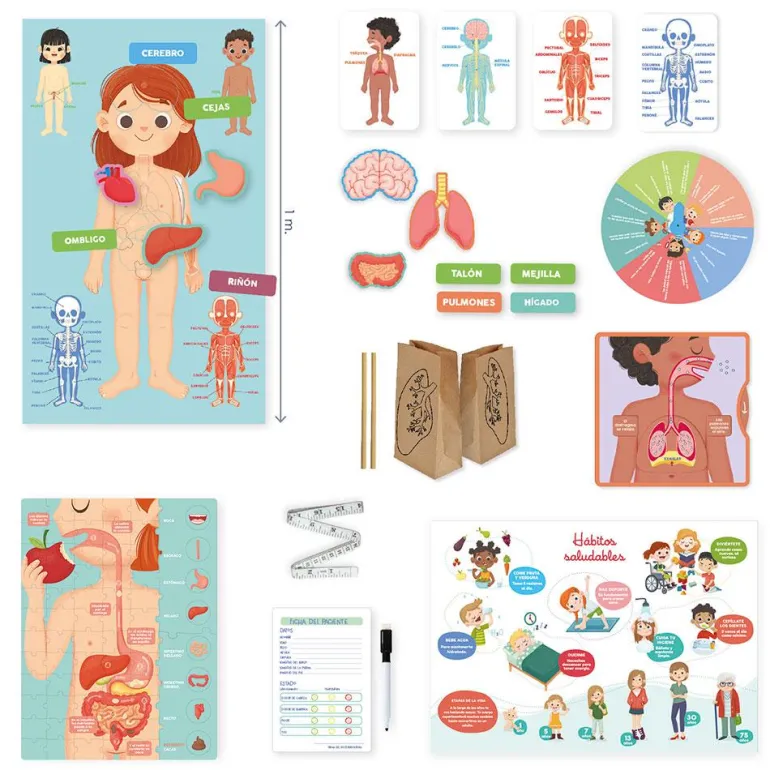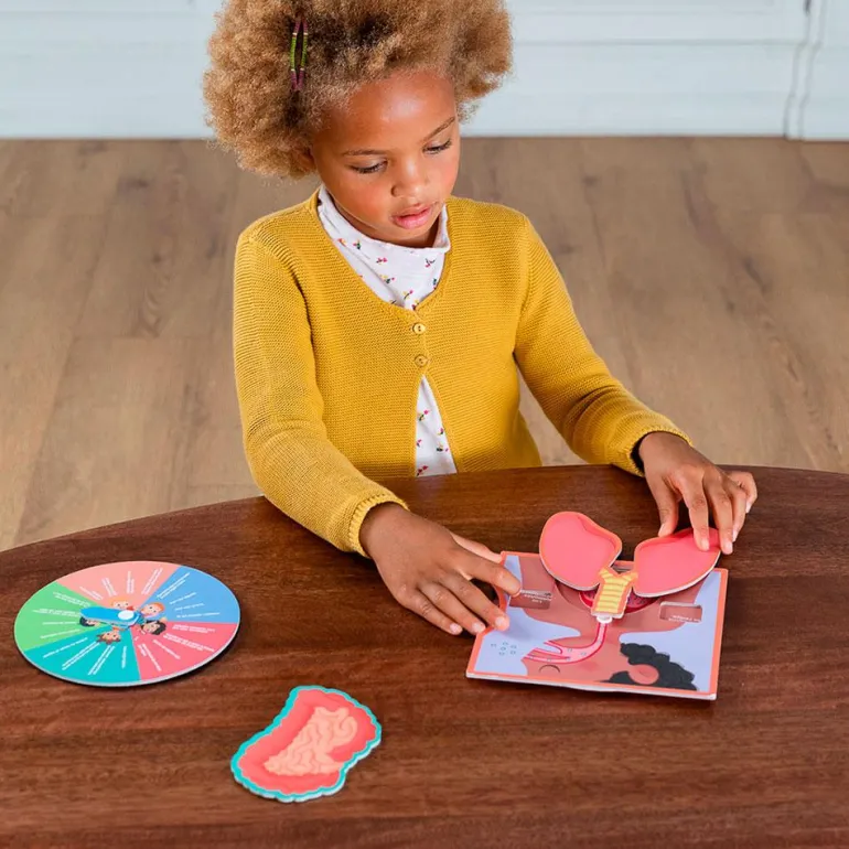 Este juego es perfecto para aprender o reforzar los conceptos básicos sobre el cuerpo humano que los niños y niñas aprenden en clase, de forma muy divertida gracias a las distintas actividades que contiene. Con un diseño llamativo y adaptado a las manos pequeñas, este juego ofrece un sinfín de horas de entretenimiento invitando a observar, experimentar y manipular, por lo que favorece el desarrollo de habilidades motoras y de razonamiento.