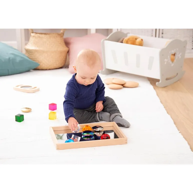 Nos encantan los juegos y recursos que potencian un aprendizaje práctico y experimental, las características de esta bandeja la convierten en un recurso para la estimulación temprana, conocimiento de sí mismo y del entorno. ¡Ofreciendo un sinfín de posibilidades de juego!