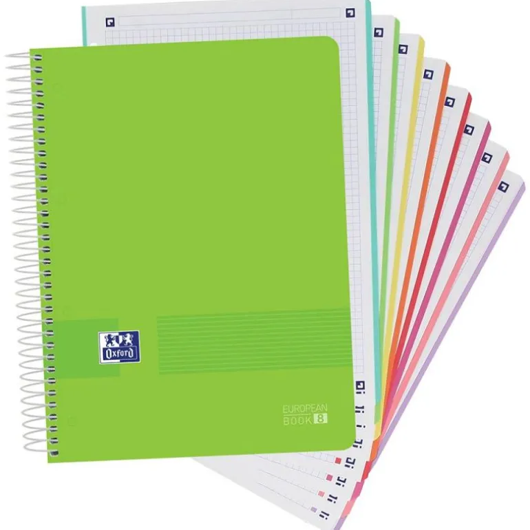 Dispone de espiral blanca, y las hojas incluyen 8 colores en los laterales, para que puedas organizarte por color según la asignatura.
