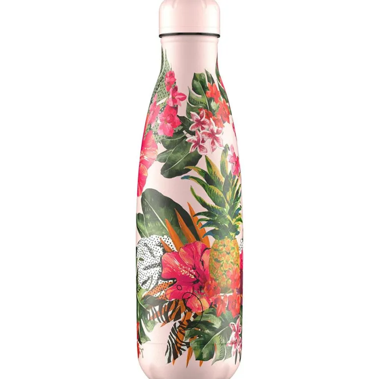 Sustituye tus botellas de plástico de un solo uso por esta alucinante botella reutilizable con un origial estampado de flores tropicales que te permitirá disfrutar en cualquier parte de tus bebidas frías o calientes, sea cual sea la temperatura ambiente. ¡Perfecta para tu día a día!