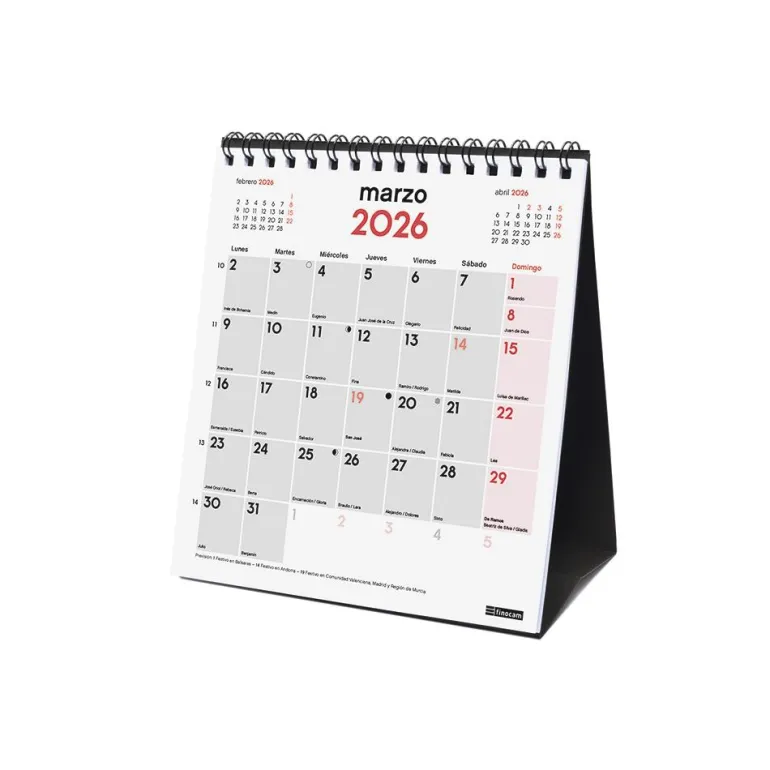 Calendario anual de sobremesa encuadernado con espiral doble. Perfecto para planificar.
