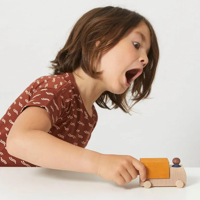 Nos fascinan los juguetes de madera con diseño sencillo, ya que facilitan que los niños y niñas desarrollen su imaginación partiendo de elementos neutros a los que atribuirán las características que quieran en cada momento. Además, incluye una figura también de madera que completa el conjunto que facilita el juego simbólico, ¡hoy seremos camioneros! Es perfecto para que los más pequeños desarrollen su creatividad y la motricidad mientras juegan a conducir su flamante camión de un lado a otro. Es compatible con los juegos de la serie Lubu Town.