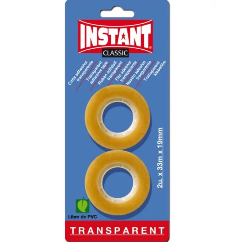 Contiene 2 rollos de cinta adhesiva transparente de 33x19mm.