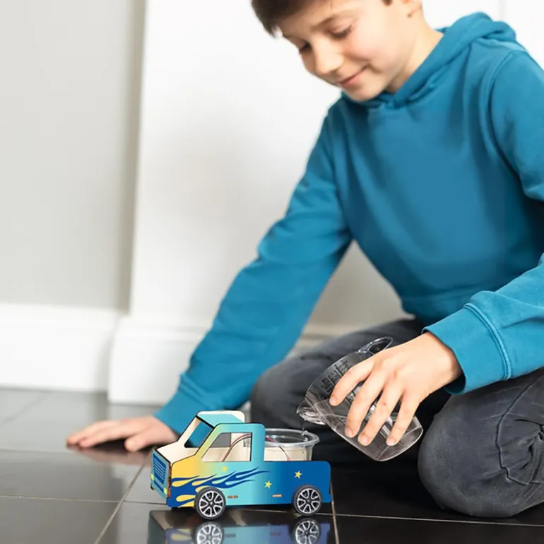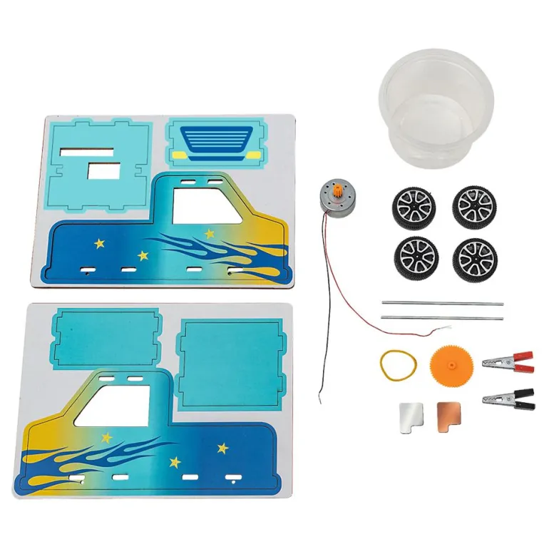 Sin pegamento ni piezas complejas de ensamblar, este set se transforma en un coche eléctrico que funciona con agua salada, ¿conocías este tipo de transformación de energía? Experimenta con este coche y descubre cómo funciona la energía cinética, ¡mientras dejas a todos boquiabiertos con el coche del futuro!