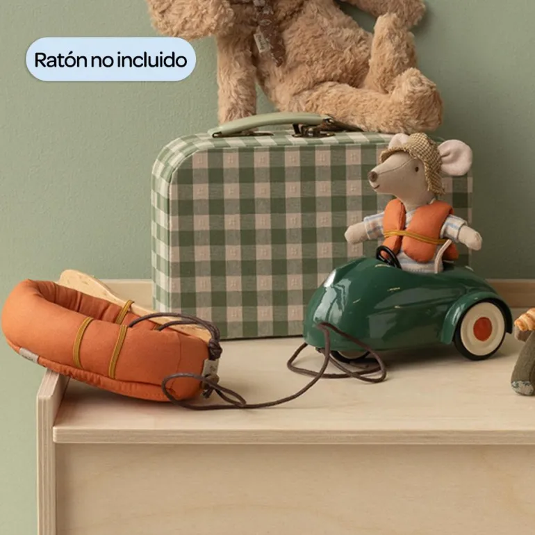 Es la hora de disfrutar de un agradable viaje en coche directamente hacia la diversión, ¡tus ratoncitos Maileg irán de lo más confortables en este automóvil verde!