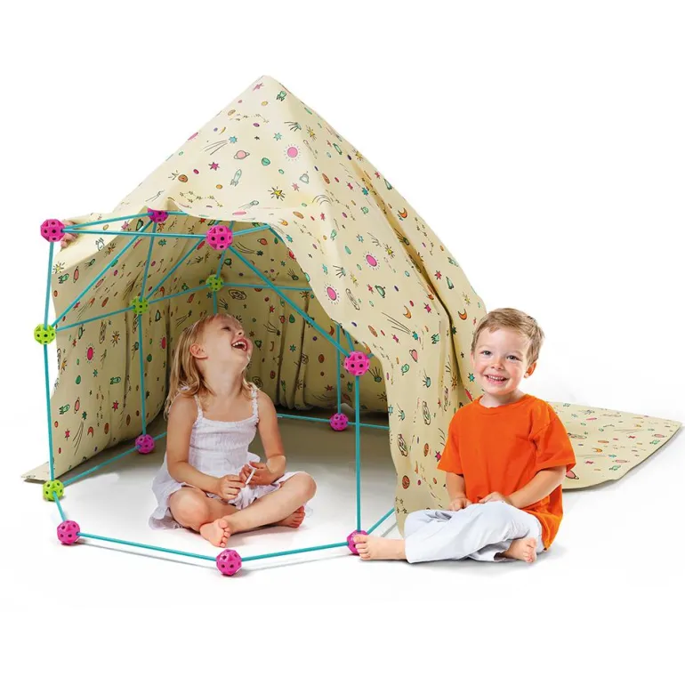 Diseña y construye con tus propias manos todo tipo de cabañas, estructuras o túneles. Este set de construcción para crear grandes edificaciones es perfecto para pequeños constructores: diseña, monta y agrega una simple sábana para convertir el resultado en un refugio, ¡alucinante!