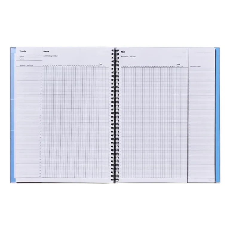 Diseñado para realizar la gestión de la evaluación continua y la planificación y seguimiento del plan semanal y la tutoría, dispone de cubiertas de PVC que protegen tus anotaciones sin perder flexibilidad. Su tamaño permite incluirlo en los demás cuadernos de profesorado.