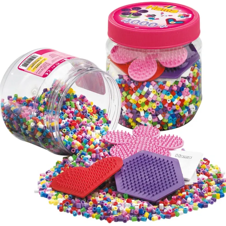 ¡Pon a prueba tu imaginación con Hama y crea divertidas figuras de colores! Bote con 4000 perlas de Hama Midi y tres plantillas para que puedas continuar realizando increíbles y originales creaciones.