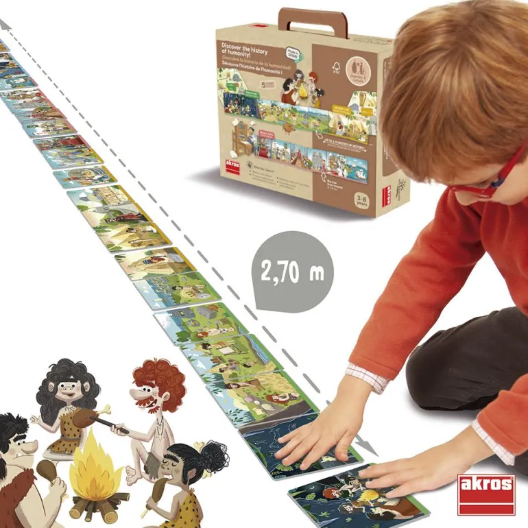 De una manera muy sencilla, este juego muestra las distintas etapas de la historia por medio de paneles ilustrados, junto a los que habrá que colocar las distintas fichas que formen parte de esa etapa y que ilustran acontecimientos relevantes a lo largo del tiempo, desde la prehistoria hasta hoy. Estas fichas también pueden clasificarse de manera cronológica como una gran línea del tiempo, ¿no es genial? Niños y niñas comprenderán mejor el paso del tiempo y la evolución de las personas y su entorno a lo largo de la historia, además de aprender sucesos de gran importancia para la humanidad. Por eso, es perfecto para que lo compartas en el aula con tus alumnos o%2