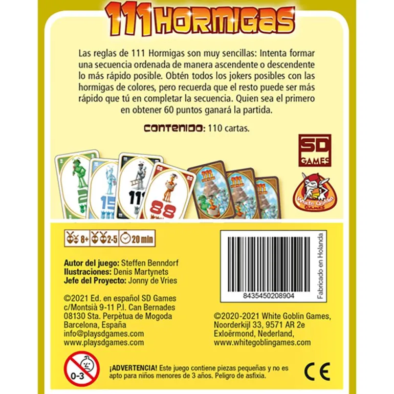 111 Hormigas combina velocidad, lógica y concentración en un formato accesible para toda la familia, donde cada partida es única y sorprendente: nunca sabes qué hormiga te dará la ventaja decisiva. Su dinámica ágil y entretenida estimula el pensamiento estratégico, haciendo que aprender y divertirse vayan siempre de la mano.