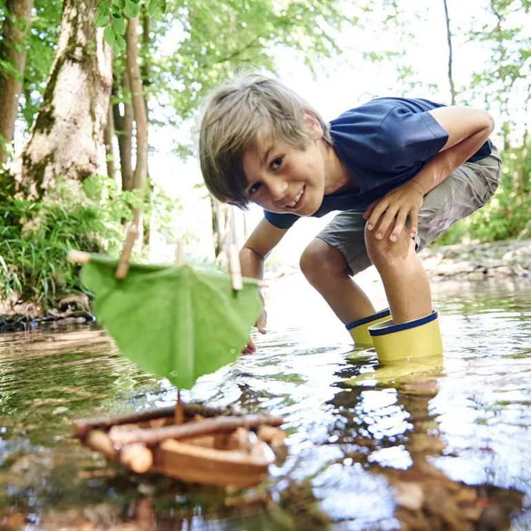 Una vez hayas completado la sencilla tarea de unir las piezas, puedes customizar tu barco añadiéndole otros elementos naturales: una hoja a modo de vela, piedras y palos… ¡Da rienda suelta a tu creatividad!