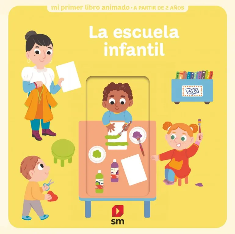 Un libro de cartón, con lengüetas y coloridas ilustraciones, que explica cómo es el día a día en la escuela infantil.