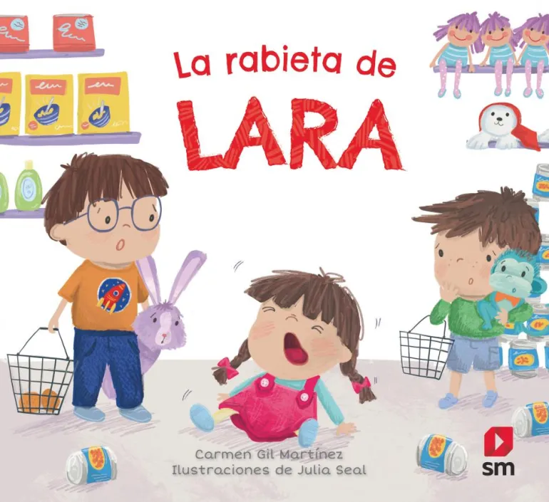 Hoy Lara y sus hermanos han ido al supermercado. Hay tantas cosas que la pequeña quiere cogerlo todo y se empeña en que le compren una foca de peluche.Como no ha tenido suerte, se ha enfadado tanto que le ha dado una rabieta. Pero no ha sido la única, porque Timi también se ha enfadado. ¡Menudo revuelo han armado en un momento!