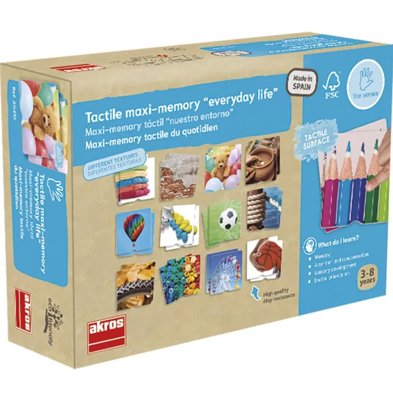 Los juegos de memoria son un imprescindible que propone un reto muy divertido: encontrar las parejas de imágenes utilizando solamente nuestra capacidad para recordar. Este juego, además, te propone jugar con el sentido del tacto, lo que añade más diversión y cierto grado de dificultad, ¡con los ojos cerrados todo se percibe de otra manera! Además, las tarjetas son de gran tamaño y con imágenes reales, por lo que resulta una gran herramienta para personas con necesidades especiales de cualquier edad.