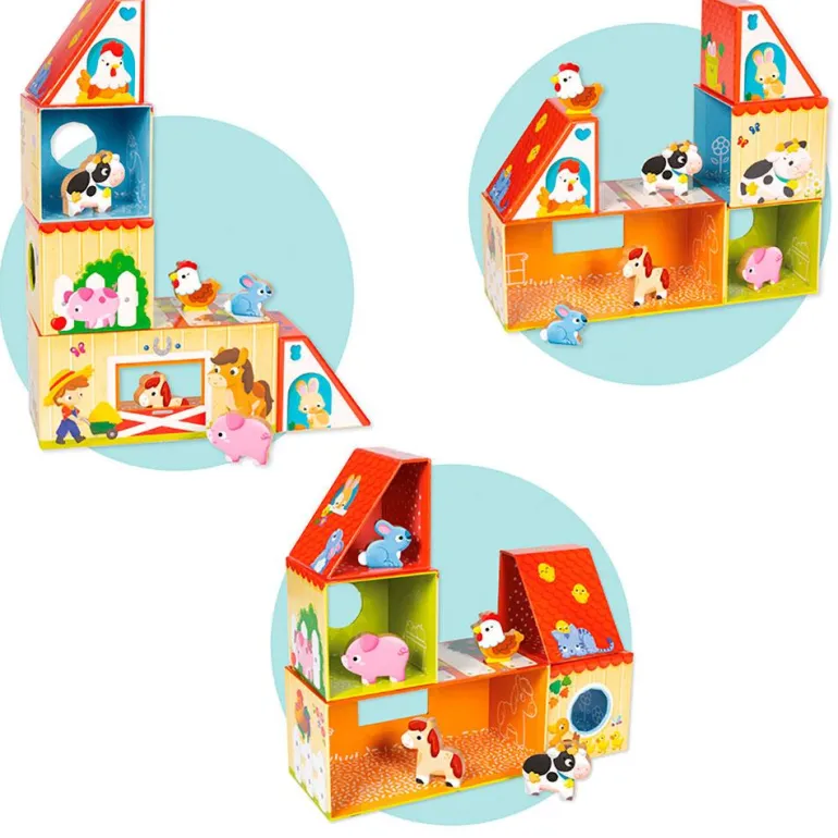 Con sus 5 cubos puedes crear un montón de combinaciones, creando así una granja diferente para cada día de juego. Los cubos están ilustrados tanto por dentro como por fuera, así las aventuras que te esperan junto a tus 5 amiguitos de la granja serán infinitas. Coge a la gallina, la vaca, el caballo, el cerdo y el conejo, y preparaos para disfrutar de horas y horas de diversión.