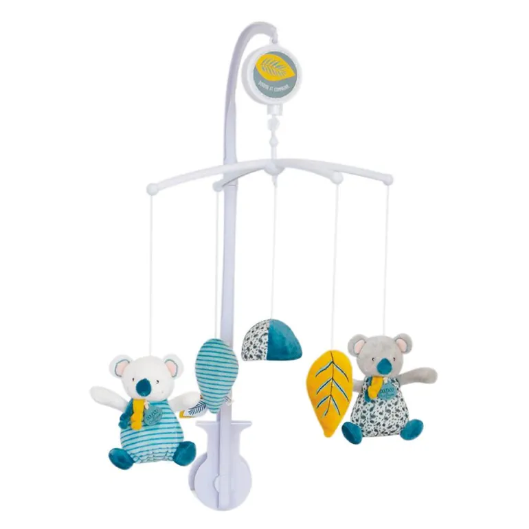 Es perfecto para acoplarlo a la cuna estimulando la vista y oído de tu bebé, mientras descubre el mundo que le rodea. Su diseño con materiales suaves y armonía de colores, sus tiernos koalas y la inspiración general en el mundo vegetal, convierten a este móvil en el aliado perfecto a la hora de dormir.