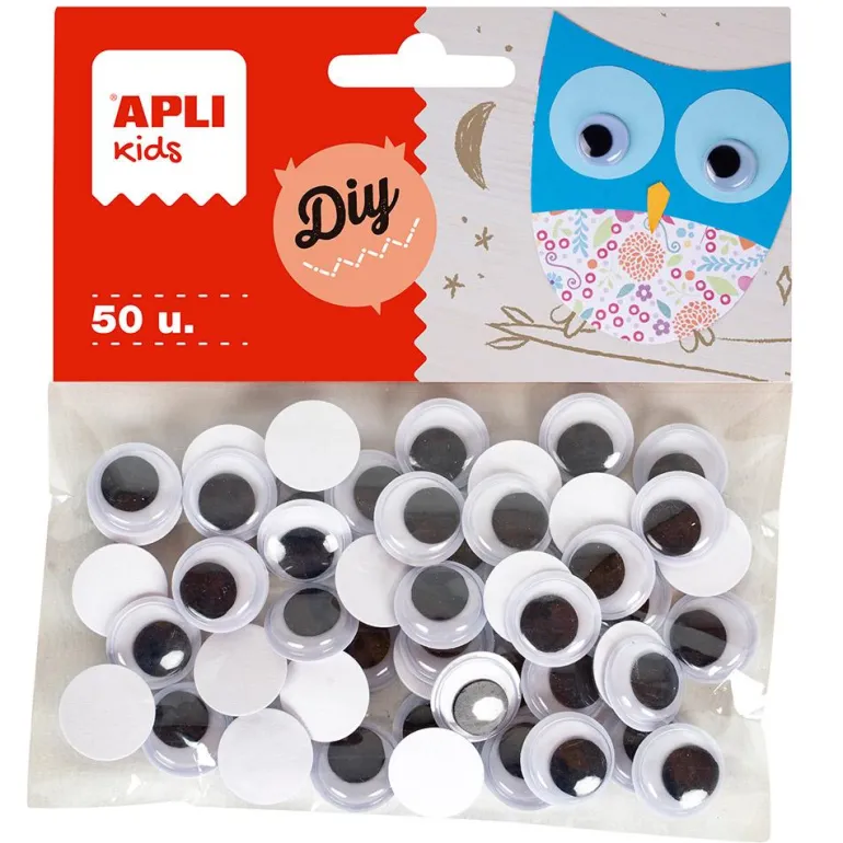 Son adhesivos, por lo que podrás colocarlos de forma fácil y limpia, ¿qué personaje vas a crear primero? Los ojos tienen el fondo blanco y la pupila móvil negra. Incluye 50 unidades de 1,5cm. de diámetro.