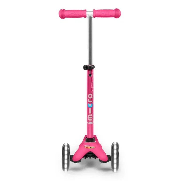 Disfruta de tus paseos en patinete con este increíble modelo de Mini Micro en color rosa, con manillar extensible… ¡y con luces LED en las ruedas!