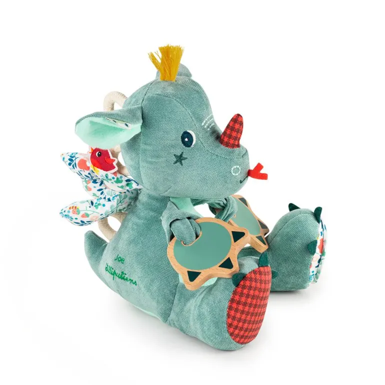 Nos encantan los juguetes que incluyen actividades que facilitan a los más pequeños el desarrollo de habilidades manipulativas, y si además su diseño invita a soñar e imaginar, ¡se convierte en un imprescindible! Este adorable dragón será el compañero de juegos perfecto con el que los más pequeños de la casa desarrollarán su oído, vista y tacto.
