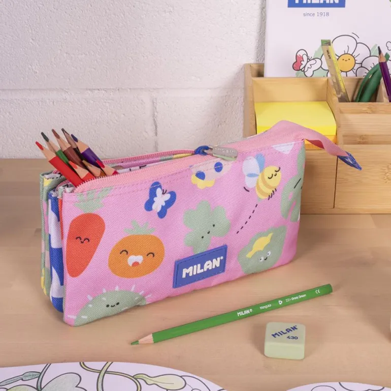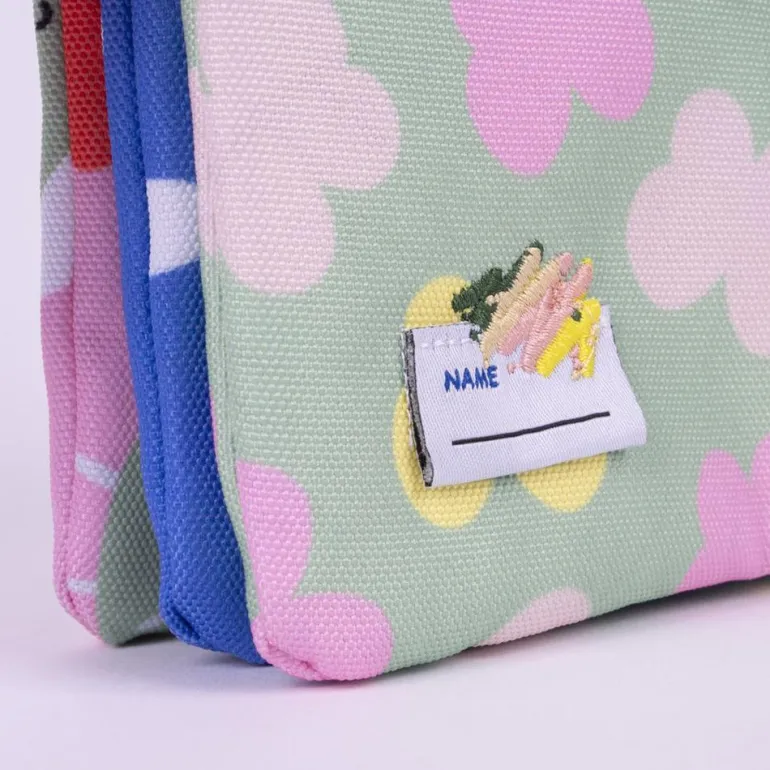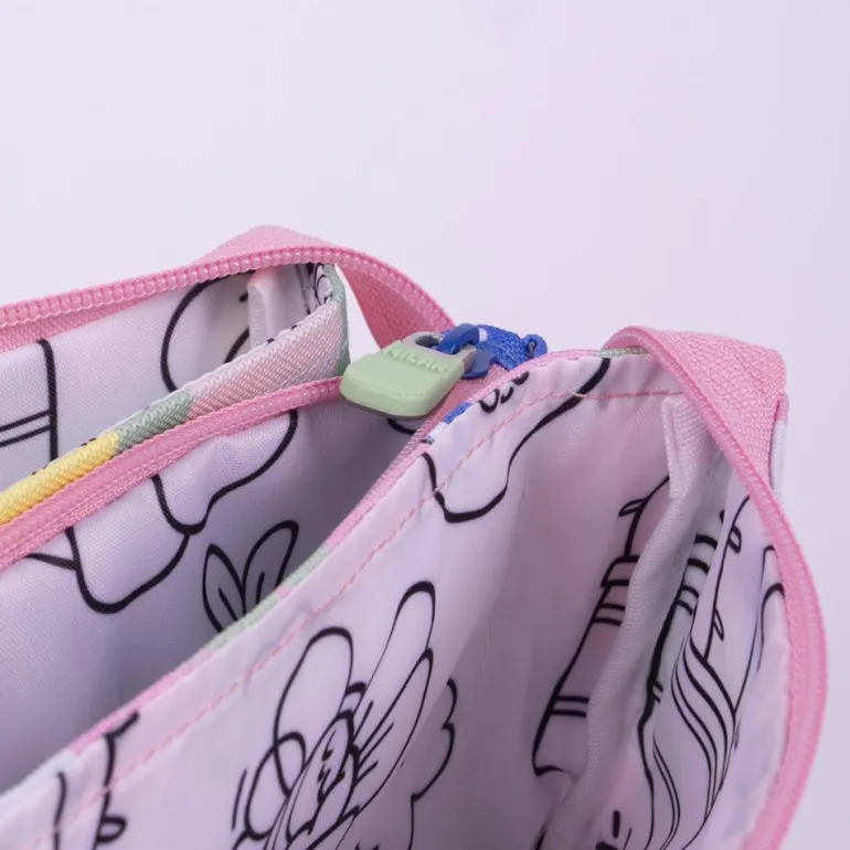 ¡Con este vistoso portatodo con un estampado de animales y plantas sobre fondo rosa, organizar el material escolar será pan comido!
