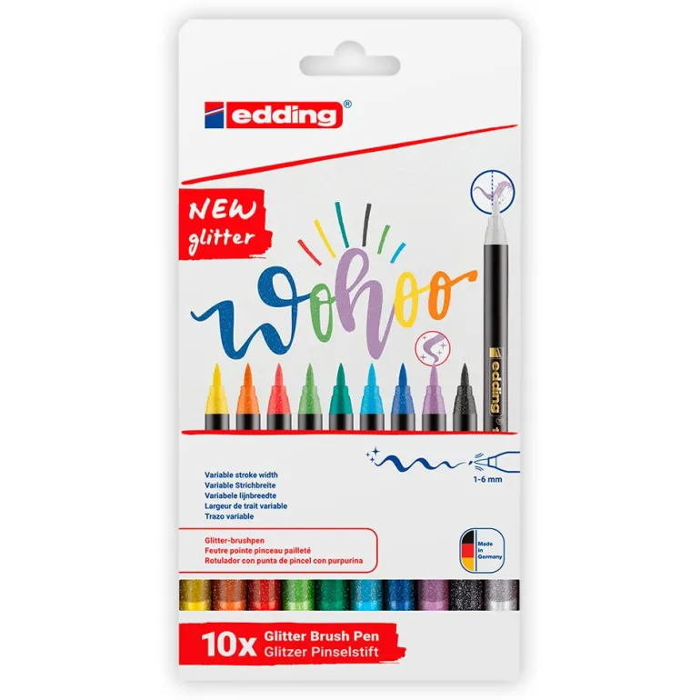 Da rienda suelta a tu creatividad con este set de rotuladores glitter con punta de pincel, ¡y llena de brillo y color todos tus diseños!