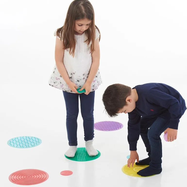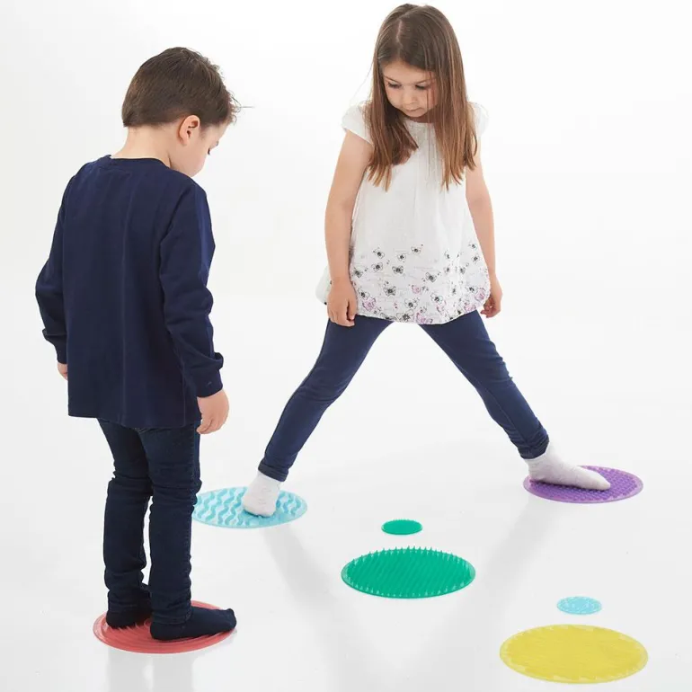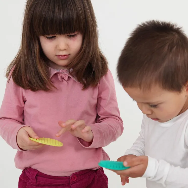 Set círculos silicona sensoriales texturas y colores es un juego con muchas posibilidades, ya que los más pequeños y pequeñas de la casa a través del tacto podrán describir las texturas y así ampliar su vocabulario, diferenciar entre los distintos tamaños que tienen los círculos, e incluso, gracias a su material de silicona podrán crear un circuito sobre cualquier superficie sin peligro, ya que se adhieren al suelo haciéndolos antideslizantes y seguros.