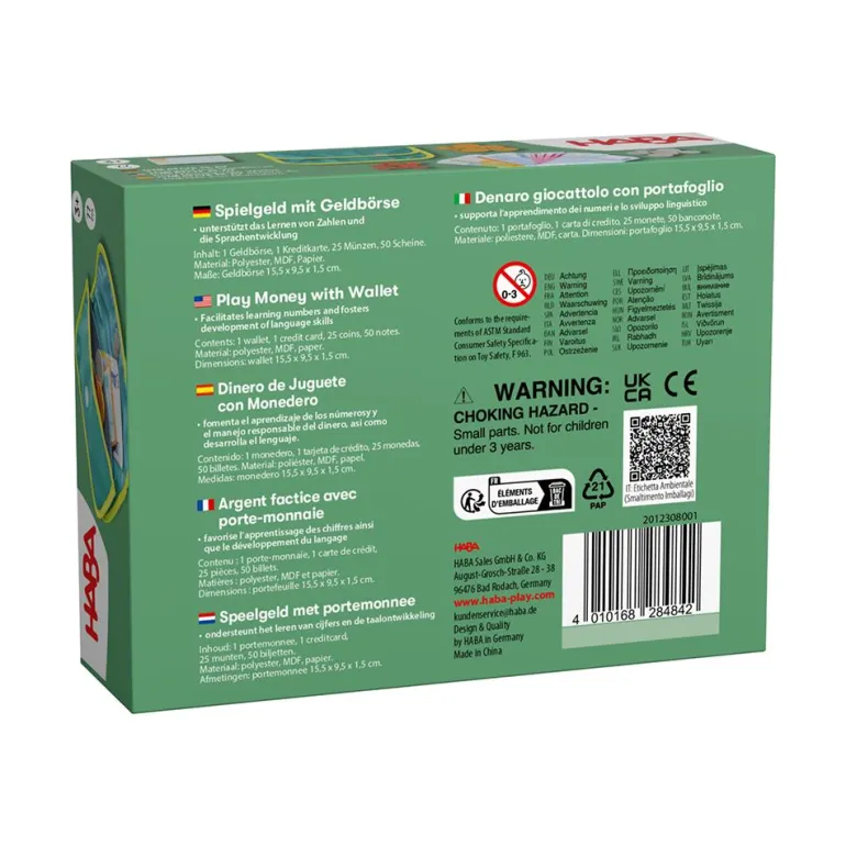 Aprende a manejar el dinero con soltura igual que los mayores, con este completo set. Dentro de la billetera encontrarás billetes y monedas de euro de todo tipo y una tarjeta bancaria, ¡descubre cómo administrarlo sabiamente!