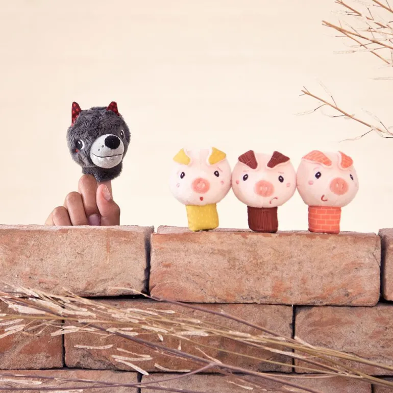 Este fabuloso set de marionetas de dedo incluye los cuatro personajes del cuento de los Tres Cerditos, para que puedas recrear infinitas aventuras e historias. ¡Descúbrelo!