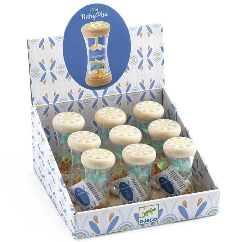 ¡Siente el ritmo! Descubre Baby Plui, un vistoso sonajero alargado de madera con diseño colorido, que tu bebé adorará.