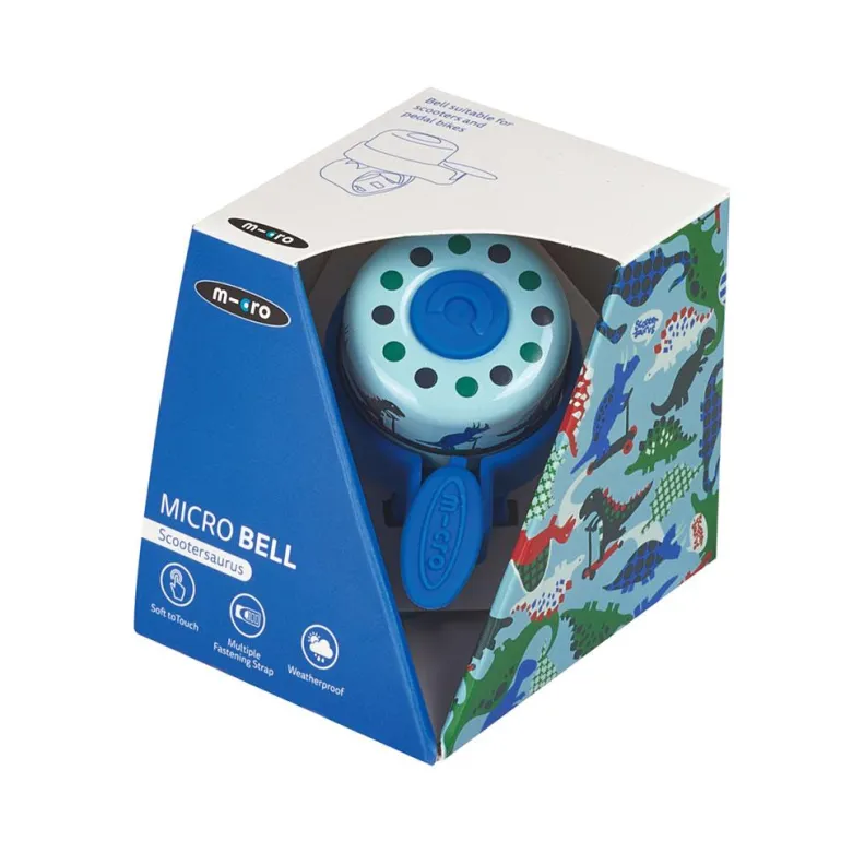 Coloca en el manillar de tu patinete Micro un timbre con un llamativo diseño de dinosaurios y disfruta de una conducción segura y divertida.